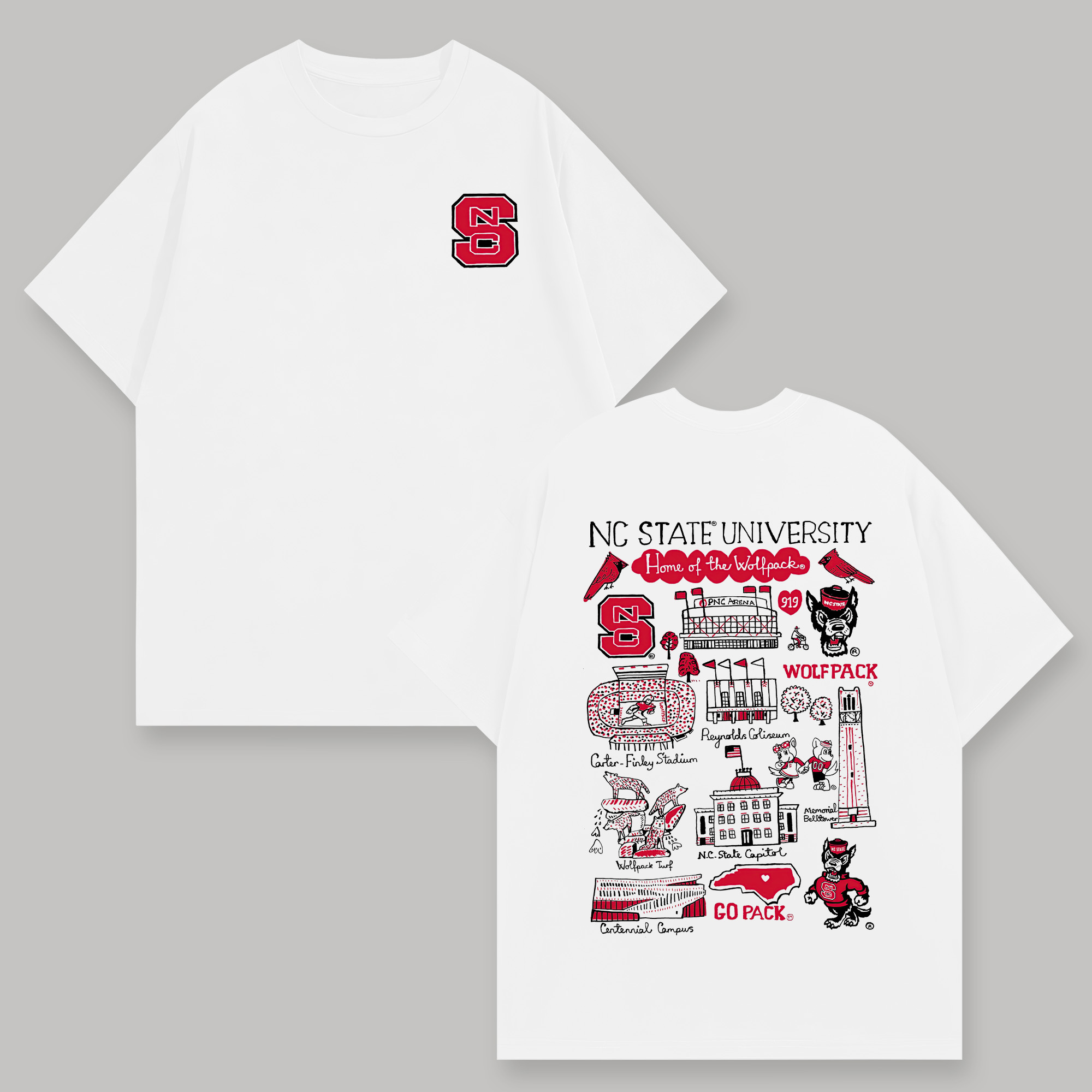 NC State University Printed Oversized Unisex T-shirts