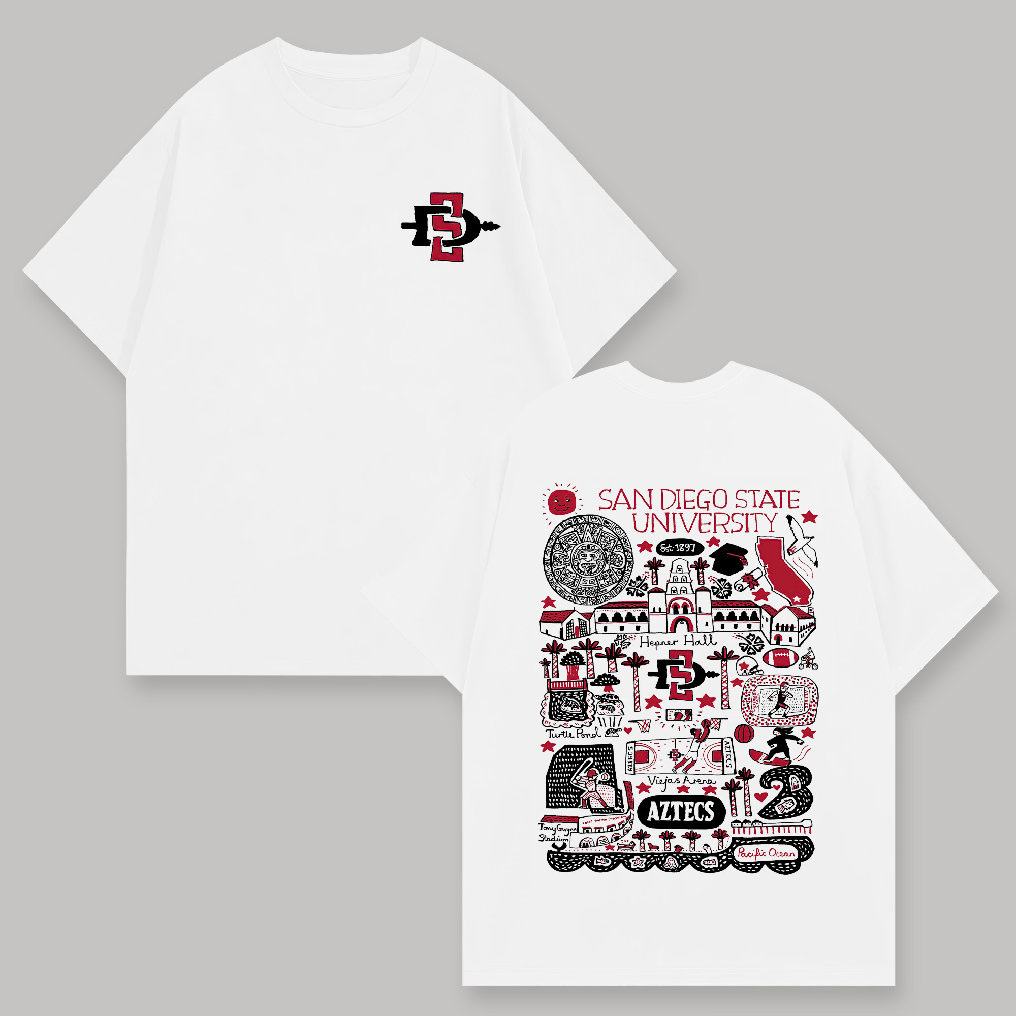 San Diego State University Printed Oversized Unisex T-shirts