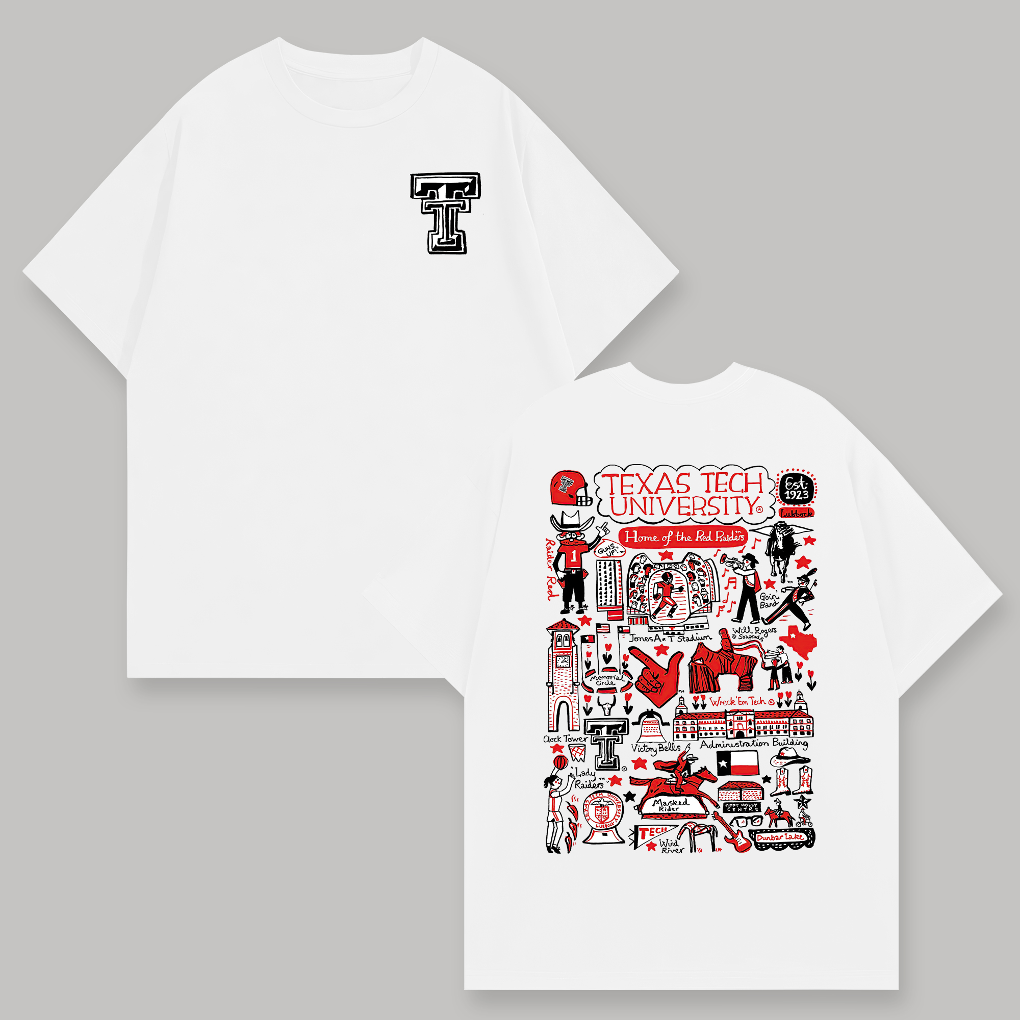 Texas Tech University Printed Oversized Unisex T-shirts